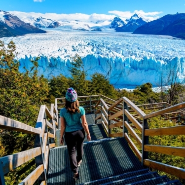 La excursión Perito Moreno: Pasarelas que parte desde El Calafate, es una visita guiada en la que conocerá el Glaciar Perito Moreno disponiendo de amplio tiempo para recorrer a su ritmo las pasarelas y los balcones del Parque Nacional Los Glaciares. El tour no presenta exigencia física y es una actividad ideal para personas mayores o para grupos con niños. Podrá adicionar una navegación de 1 hora o la opción de Tocá el Glaciar.