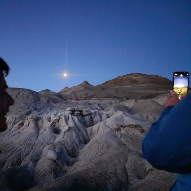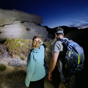 La excursión Moonwalker: Bosque Petrificado La Leona es un tour de trekking nocturno desde El Calafate en la que se visita este bosque paleontológico cerca del Lago Viedma como si se estuviera haciendo una caminata lunar. Incluye trekking por el Bosque Petrificado La Leona entre troncos y restos de dinosaurios fosilizados y paisajes nocturnos únicos mientras guías expertos relatan la historia geológica del lugar. La excursión incluye vianda y la contemplación con linternas del paisaje nocturno.