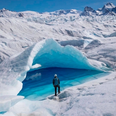 Excelente alternativa full day partiendo y regresando a El Calafate dirigida a aquellos que quieran disfrutar del trekking sobre el hielo en la zona de El Chaltén sobre el Glaciar Viedma, el más grande del parque nacional. La excursión se desarrolla en un lugar muy poco explorado y con pocos vestigios de turismo ya que este tour se encuentra fuera del circuito turístico tradicional. Después de trasladarse desde El Calafate, se navegará frente a la pared del Glaciar Viedma y se caminará por 3 horas sobre el hielo.