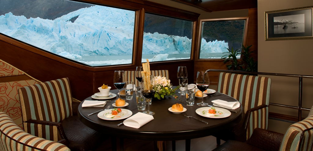 La excursión Experiencia Glaciares Gourmet ofrece el servicio más exclusivo del Parque Nacional Los Glaciares desde El Calafate. En este tour navegará las aguas del Lago Argentino a bordo del Crucero María Turquesa y visitará los glaciares Upsala, Spegazzini y Perito Moreno. Es la única navegación que le permite conocer los tres principales glaciares de Argentina en un mismo día combinándolo con una caminata por el bosque en el Canal Spegazzini.